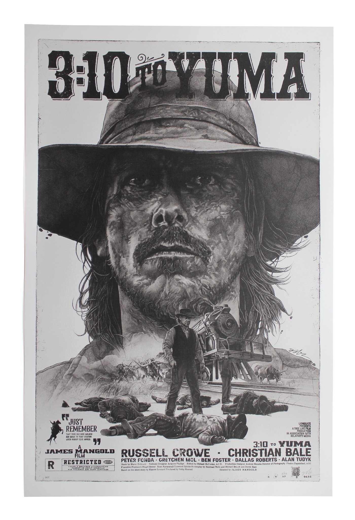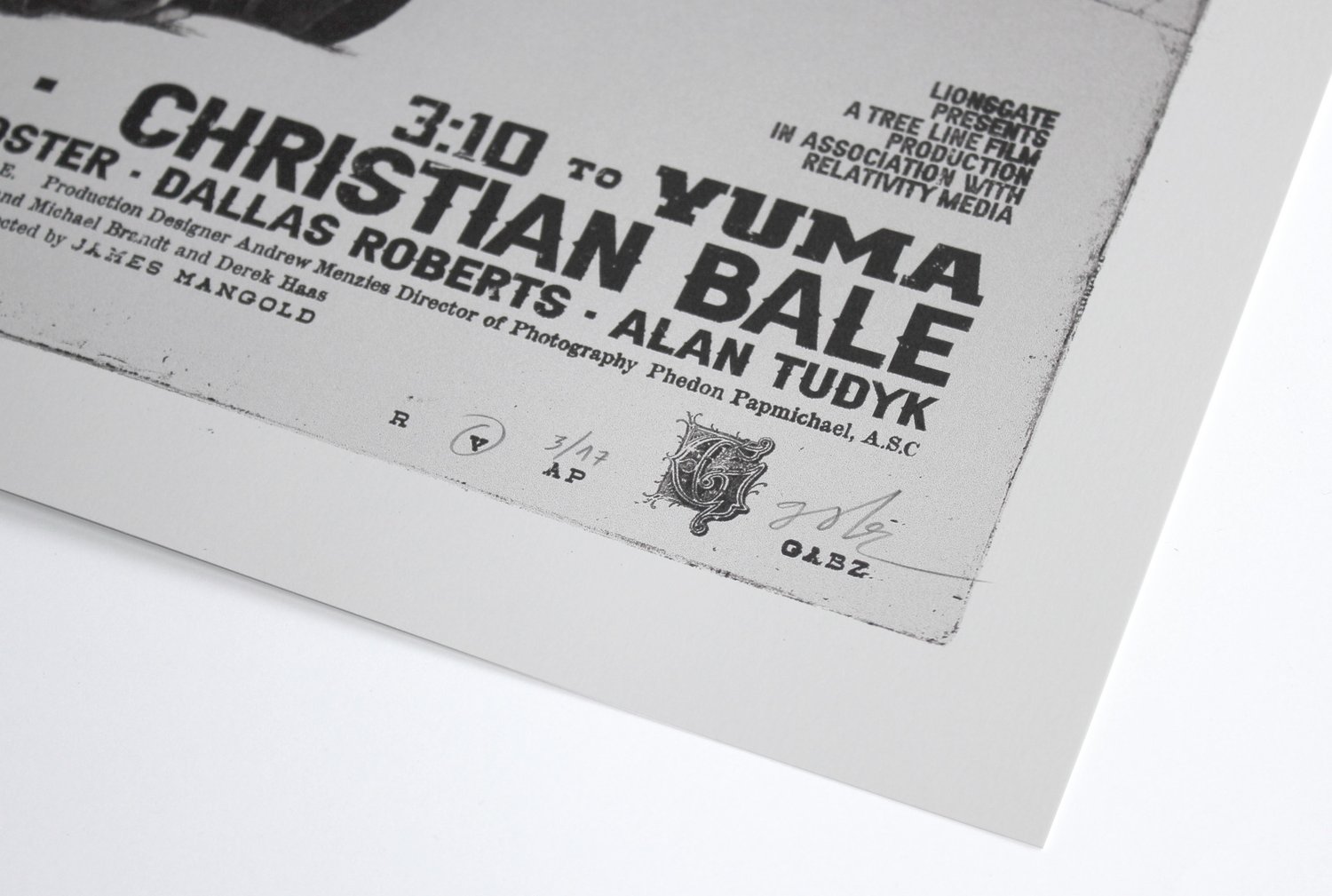 Screenprinted poster inspired by James Mangold’s „3:10 to Yuma”. 24 x 36” 5 color Regular and Variant versions originally hand drawn with pencils and mechanical pencils on paper. Later digitally remastered in Photoshop. Typography made together with my brother Krzysztof Domaradzki. Printed by Atelier Du Grand Chic with color separations by Juan Saniose. Each print comes signed and numbered.