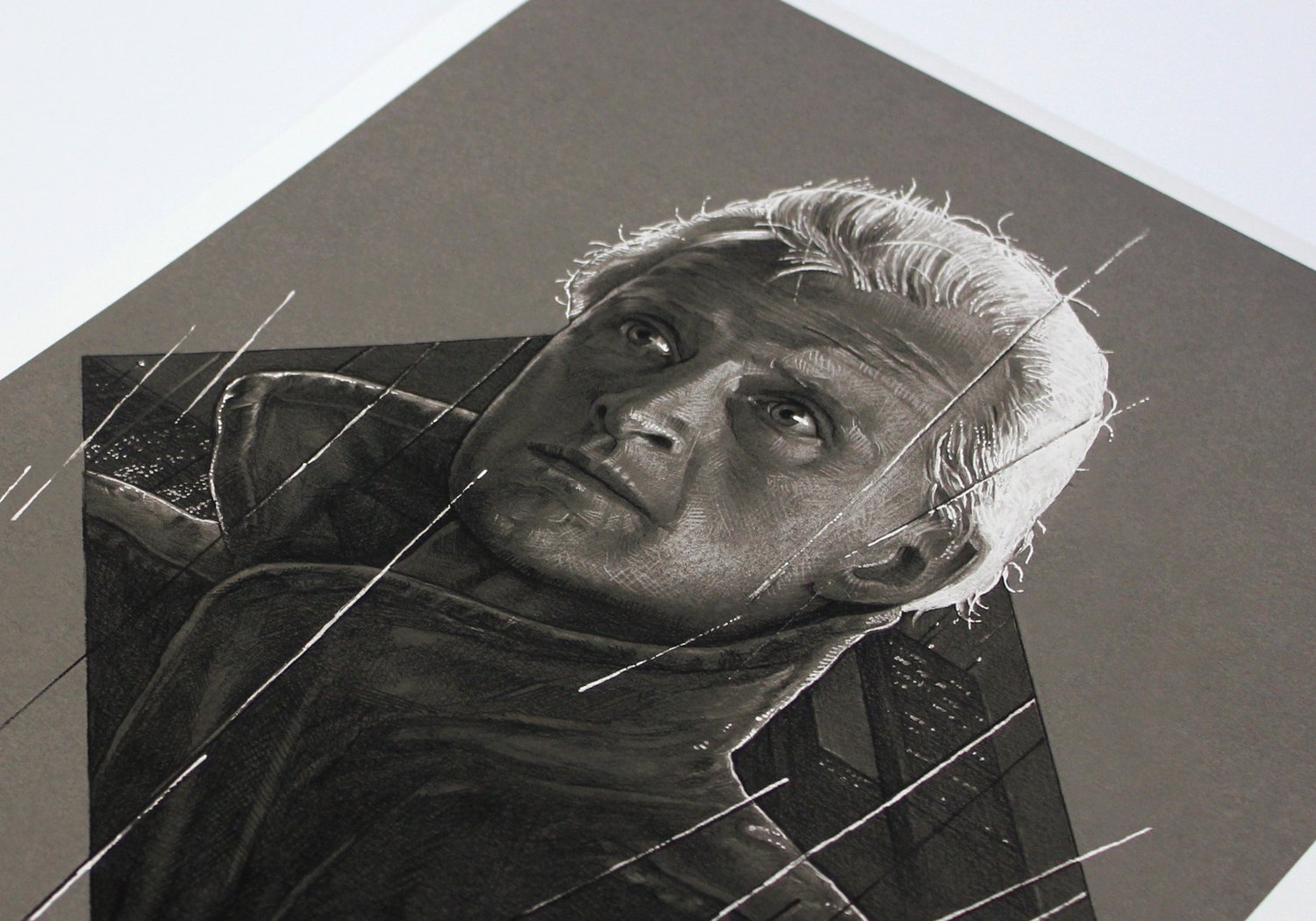 Limited edition Fine Art Giclee 3 print set inspired by the characters from Ridley Scott's science fiction neo-noir masterpiece "Blade Runner": Rutger Hauer as "Roy", Harrison Ford as "Rick" and Sean Young as "Rachel". Made with watercolor pencils remastered in Adobe Photoshop. Regular limited edition of 40. Printed by Lumarte.eu on Hahnemuhle Photo Rag 308. Each print comes signed and numbered.