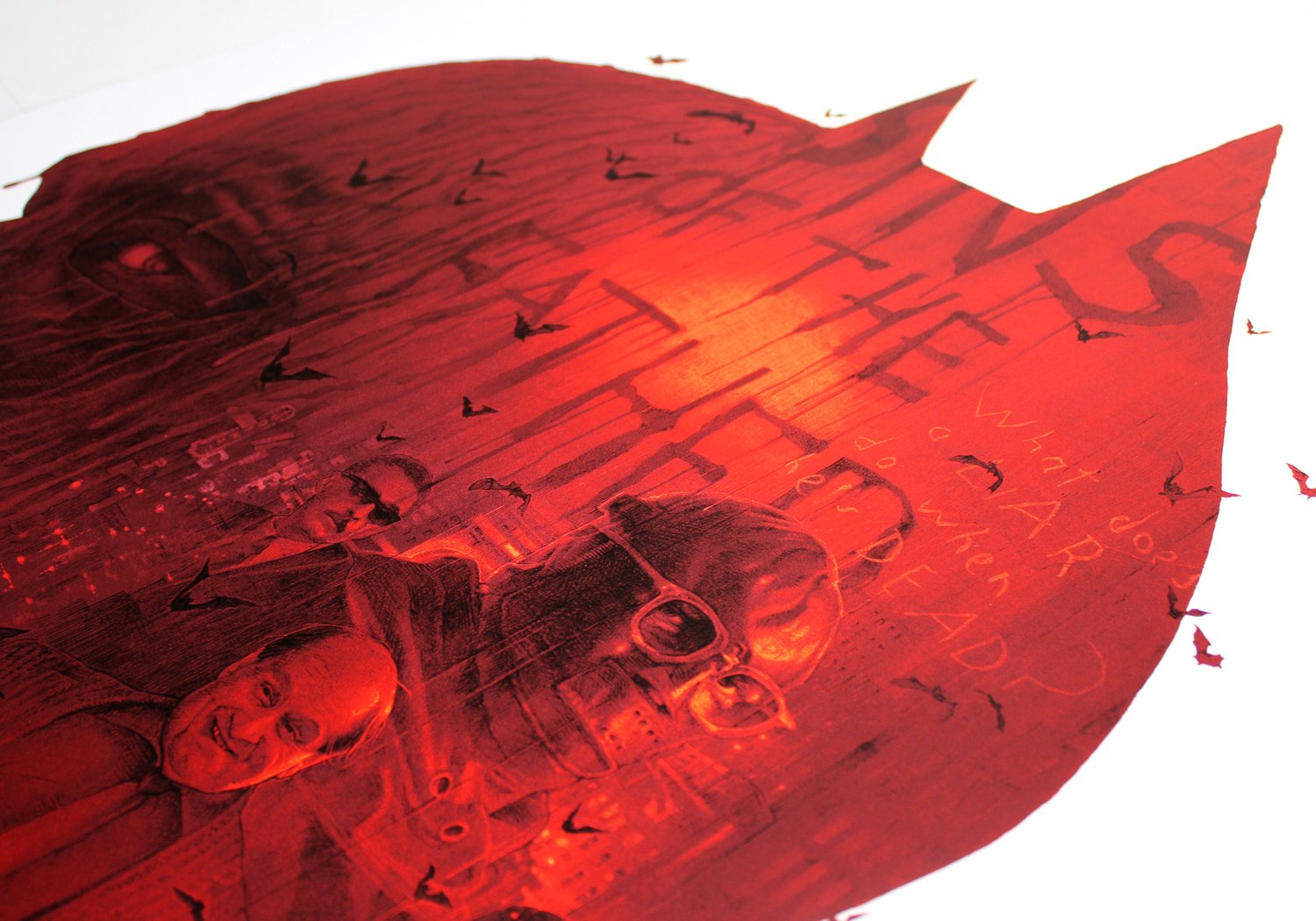 Screen printed poster inspired by Matt Reeves’ “The Batman”. 8 color Variant made for Bottleneck Gallery. Based on pencil drawings later polished and remastered in Adobe Photoshop. Printed on white paper by VGKids. Each print comes signed and numbered.