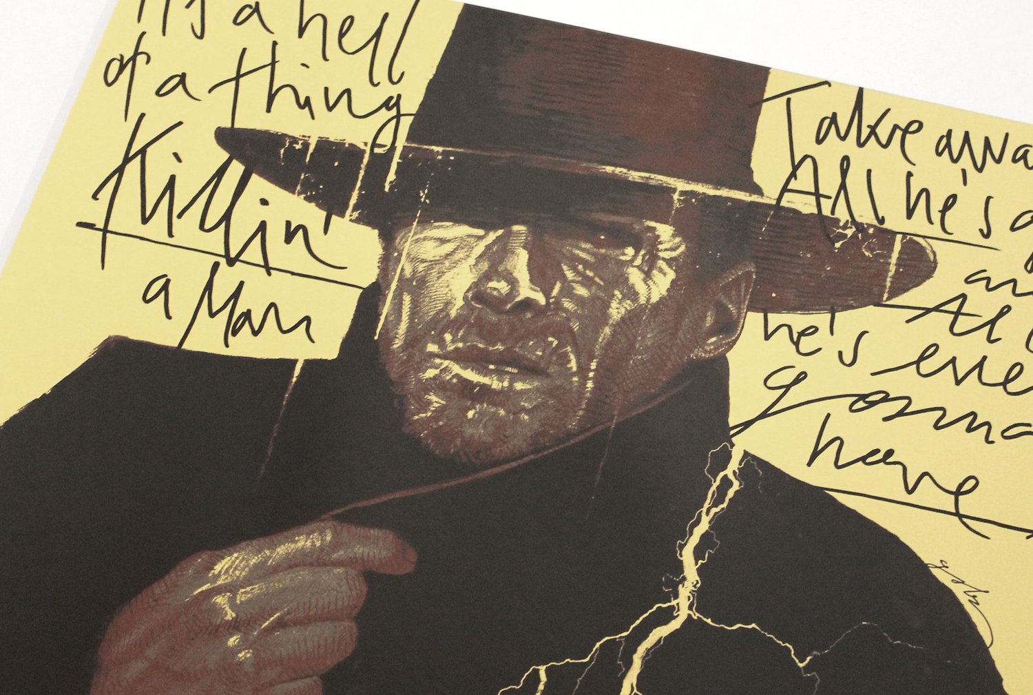 Limited edition screen printed poster inspired by Clint Eastwood’s “Unforgiven”. 5 colors Big Whiskey (grey) and Delilah (with brown) Variants based on watercalor original drawings. Color separations by Tomasz Lassota / Beffio Studio. Each print comes signed and numbered.